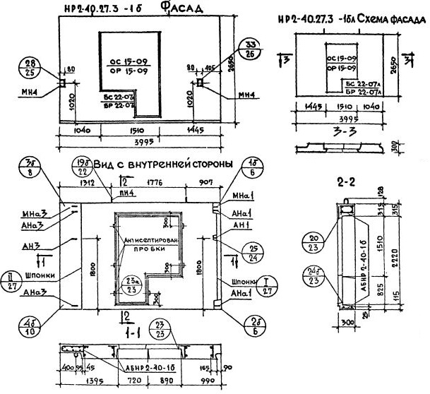 НР2-40-27.3-1бл   Наружная стеновая панель рядовая по Серии 1.132-1.